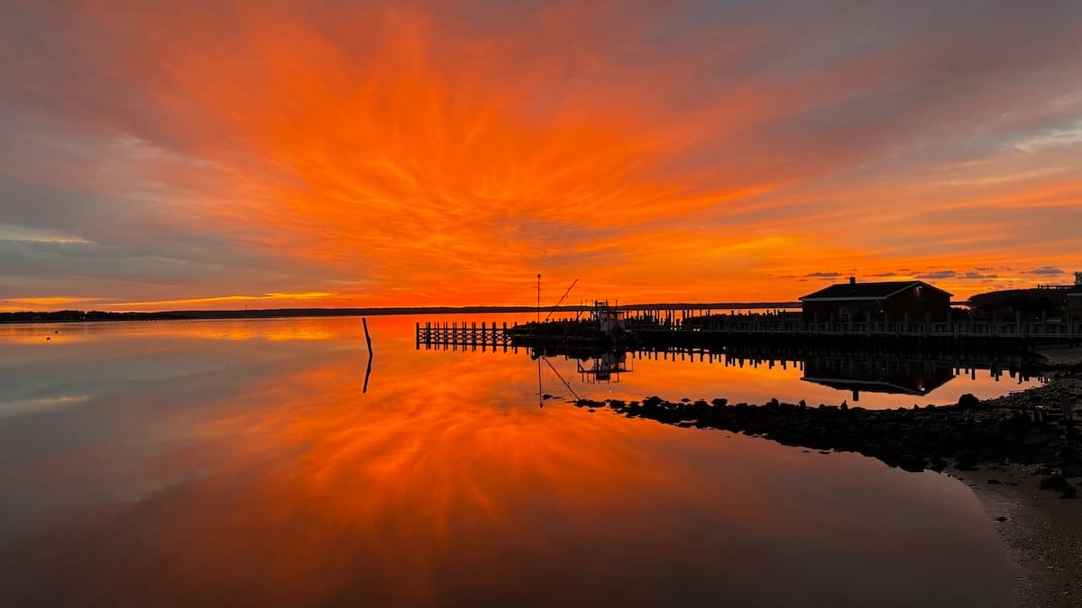 • We're expecting rain today, mainly between 7 a.m. and 10 a.m., then a chance of showers after 10 a.m., with cloudy skies, a high temperature near 61 degrees and a southwest wind 7 to 10 miles per hour, with gusts as high as 20 mph. New precipitation amounts between a quarter and half of an inch are possible. Take heart in the photo above of yesterday's sunrise over New Suffolk. This too shall pass. It will be mostly cloudy overnight, with a low around 35, and mostly sunny on Thanksgiving, with a high near 45. Black Friday sees mostly sunny skies and breezy conditions, with a high near 44 degrees.